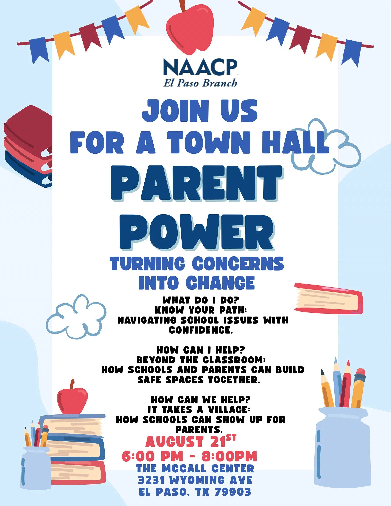 Join El Paso’s NAACP branch for a town hall meeting on how parents can empower their child’s education.